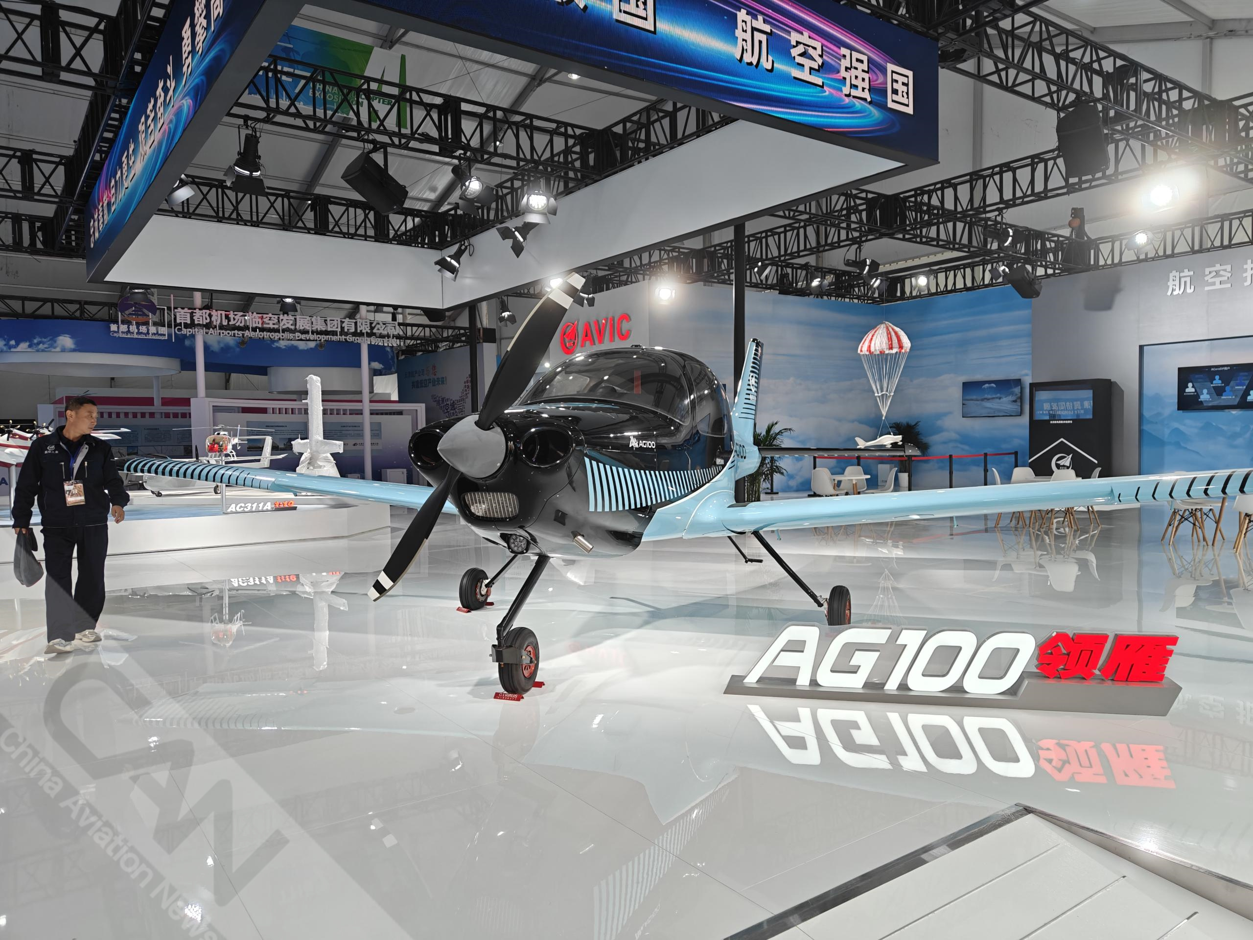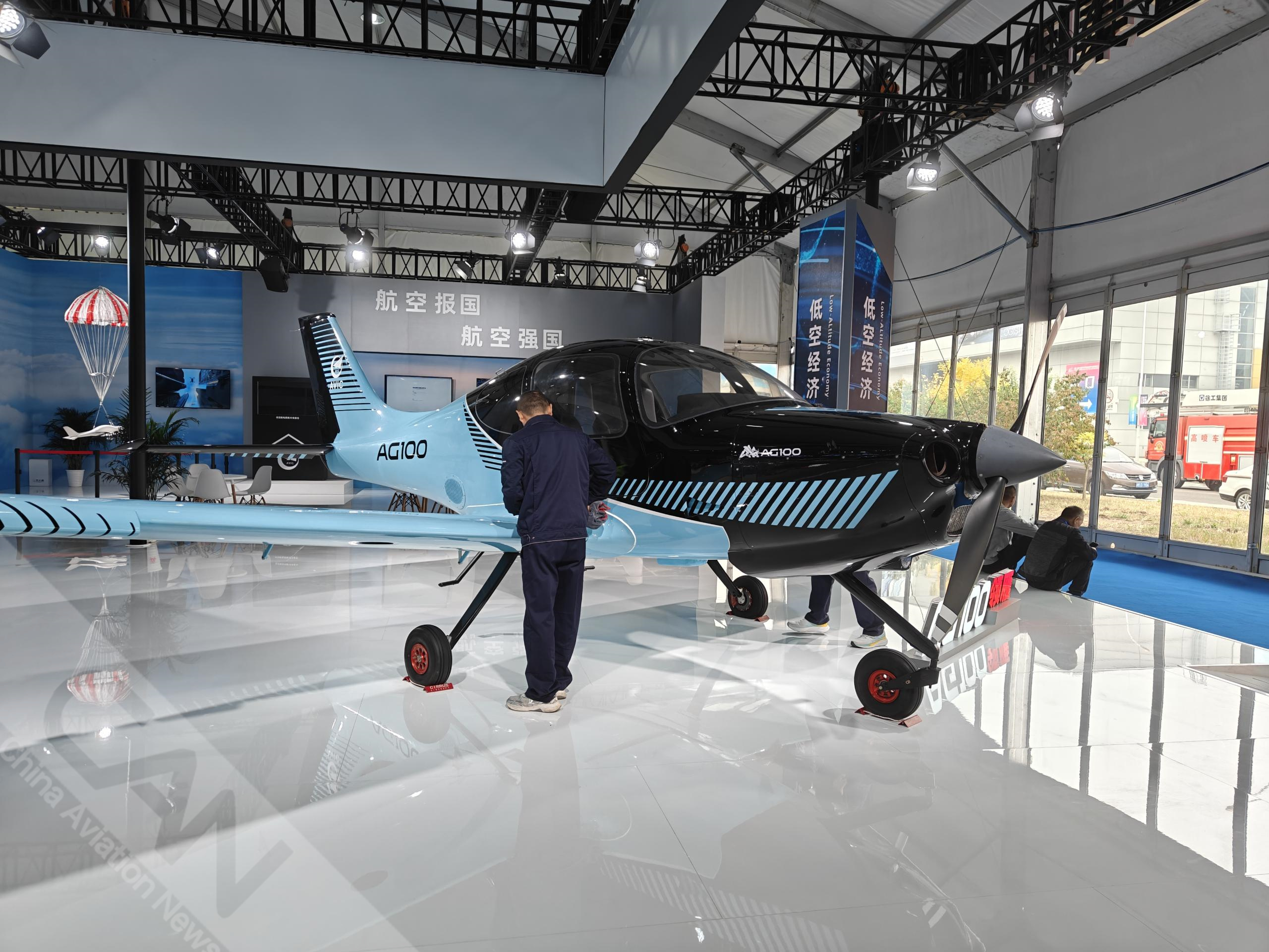 第七屆天津直博會即將開幕,來低空經濟館看AG100飛機。該機是一款3座單發飛機,下單翼、低平尾、單垂尾的常規氣動布局,全機采用復合材料,配備固定式前三點起落架、活塞發動機、觸屏綜合航電系統和機械側桿操縱,選裝空調,標配整機降落傘,具有經濟性好、可靠性高、安全性優、維護工作量小、培訓能力更強等優勢。攝影:蓋宇斌